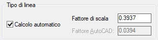 in cui FSTL è il fattore di scala dei tipi di linea presente nel box del comando IMPOSTA e che viene utilizzato se è attivo il relativo calcolo automatico.